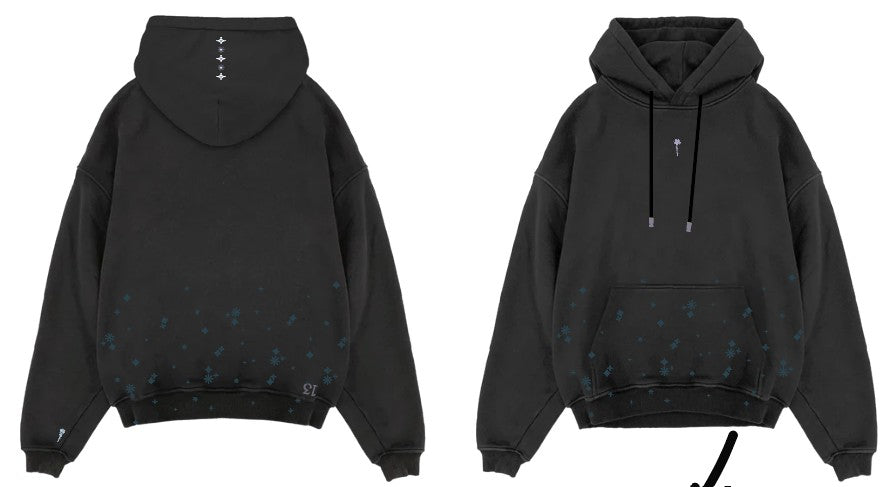 Black Hoodie, Green Snowflakes